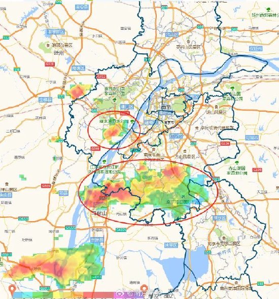 记者从南京市气象台了解到,目前南京浦口区、江宁区西部大部分地区出现明显雷达回波。预计未来1-3小时,南京浦口、江宁以及溧水高淳部分地区将出现雷阵雨天气,并伴随大风。