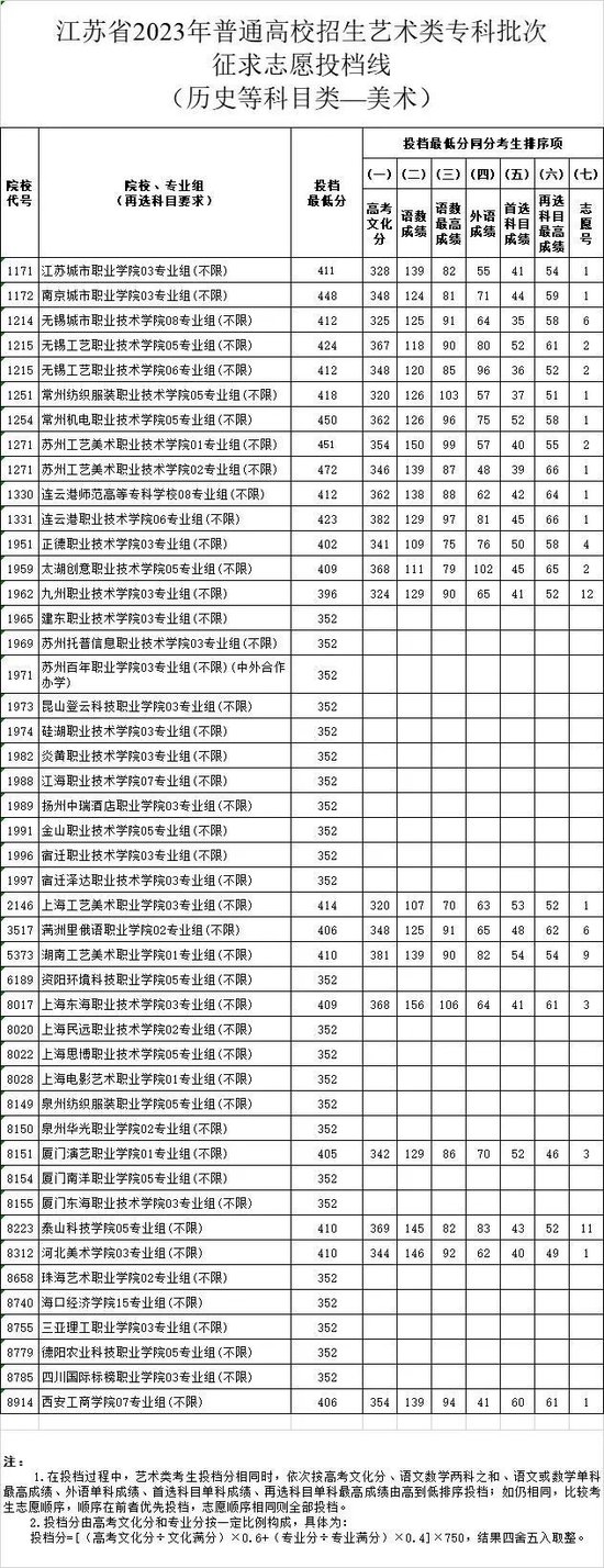 江苏省2023年普通高校招生体育类、艺术类专科批次征求志愿投档线