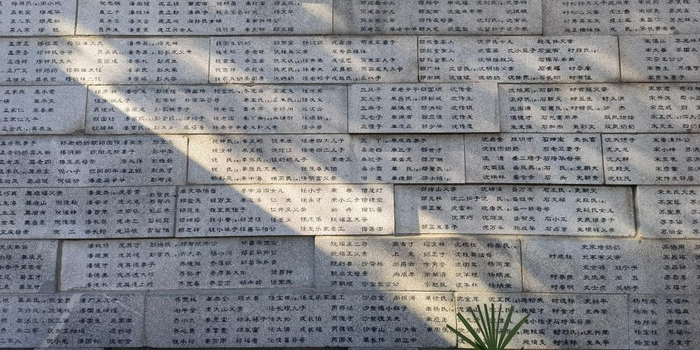 位于侵华日军南京大屠杀遇难同胞纪念馆的“哭墙”(部分)。 新华社记者邱冰清 摄