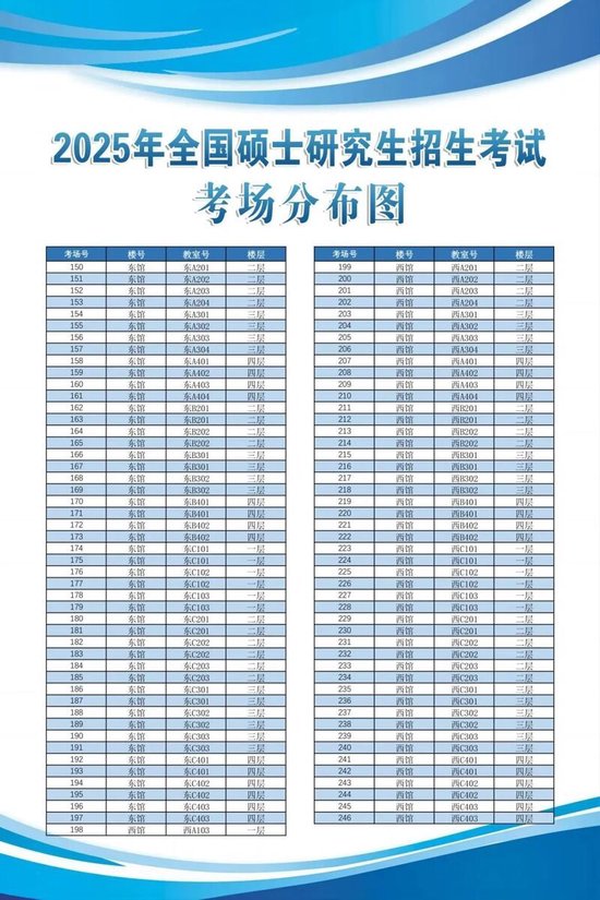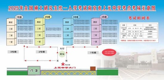 关注2025年全国硕士研究生招生考试将于2024年12月21日—22日举行。今天,南京市招考院(3211)报考点考场安排分布图发布,考生可于12月20日下午4:30—5:30在考点校门口查看考点平面图和考场分布示意图。