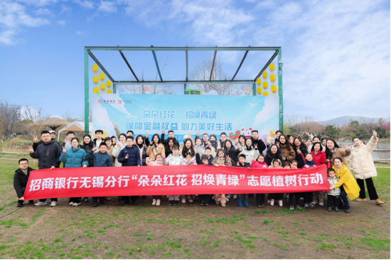 “朵朵红花 招焕青绿”——招商银行无锡分行举办2025年志愿植树暨绿色低碳行动倡议活动