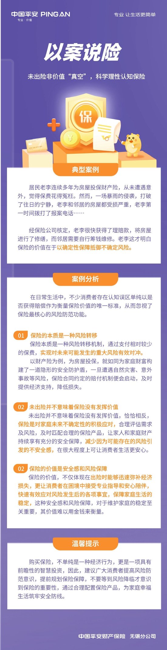 平安财产保险无锡分公司以案说险:未出险非价值“真空”,科学理性认知保险