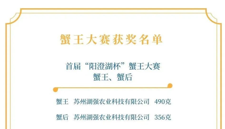 而同年首届“阳澄湖杯”评选出的蟹王为490克,蟹后为365克。