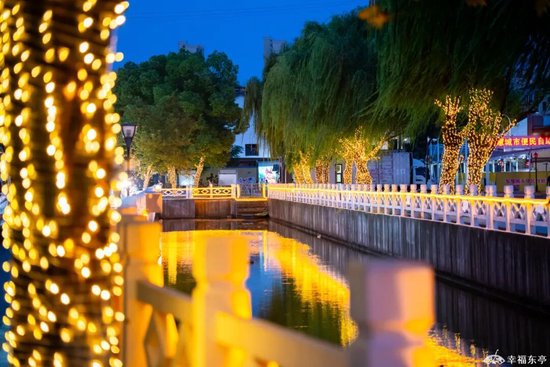 夜幕降临时,锡山区东亭街道的柏庄街柴巷浜两岸灯光如星河倾泻,与街区“火树银花”相映成趣,成为一条诗意流淌的夜间长廊。