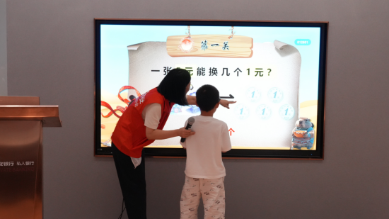 活动伊始,“银行探秘”环节就勾起了孩子们的好奇心。在银行工作人员的带领下,孩子们依次参观了智慧柜台区、现金区、客户洽谈室和对公办公区。看着智慧柜台屏幕上跳动的数字,听着工作人员讲解“如何用机器取号”,孩子们纷纷凑上前睁大眼睛观察;路过现金区时,他们又好奇地问“叔叔阿姨是怎么数钱的呀”,工作人员笑着演示简单的点钞动作,引得孩子们拍手叫好。原本对“银行”的陌生感,在一步步探索中变成了满满的兴趣,孩子们也直观了解到银行各区域的功能和业务办理流程。