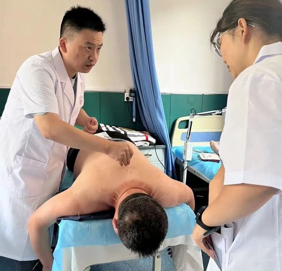 2024年4月,张磊作为对口支援医生赴陕西省延安市宜川县中医医院中医康复科工作。原计划支援半年,因疗效显著、患者需求强烈,支援时间延长至一年。患者薛军民患面瘫,眼睛闭不上、嘴角歪斜,张磊详细问诊后,依中医“祛风通络、益气活血”理论,制定以针灸为主的方案,精准针刺合谷、地仓等穴位,实时调整手法,还给予心理疏导。最终薛军民康复,赠送“医德高尚,针到病除”锦旗,离别之日,薛军民与当地患者更捧着土特产为他送别。