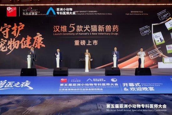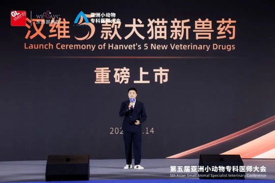 汉维宠仕现场举办5款犬猫新兽药上市发布会。