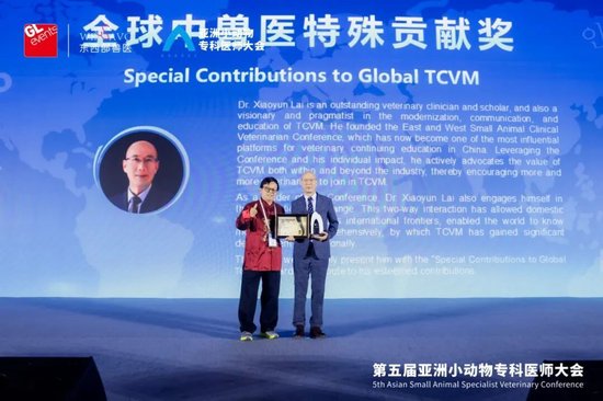 世界中兽医协会现场授予赖晓云博士“全球中兽医特殊贡献奖”,授予王清兰教授“世界中兽医协会终身名誉主席”,多人获得全球卓越中兽医奖。