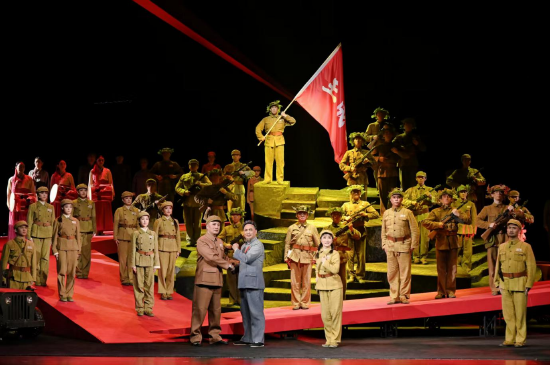 为呈现最佳艺术效果,本次演出汇集了江苏省演艺集团锡剧团、歌剧舞剧院、交响乐团、昆剧院四大院团的精锐力量。“我们要把自己当作军人,眼中有光,动作利索,在终评中‘杀出重围’!”周东亮铿锵的话语道出了大家的心声。150 余名演职人员以军人般的纪律与拼劲,将舞台化作“战场”,为冲击第十八届文华奖展开了一场全力以赴的 “艺术攻坚战”,日夜排练、反复打磨,从剧本编排、音乐创作到舞台呈现、服装道具,每一个环节都力求精益求精。该剧不仅展现了江苏演艺“集团军”的实力,更让这部红色题材作品在艺术表达上兼具“传统味”与“时代感”,得到了现场专家与观众的高度关注。