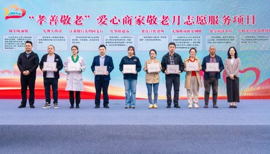 为让老年人更好地乐享晚年,新吴区和各街道精准统筹各方资源,挖掘并发动了一批爱心商家共筑爱老敬老服务网格,推出涵盖惠老助餐、金融防诈、健康惠民、生活保障等在内的9大志愿服务项目,让尊老敬老从理念倡议走向人人可参与、可感知的日常行动。现场,新安街道党工委委员、宣传委员邓芳芳,新安街道党工委委员李文明共同为“孝善敬老”爱心商家代表颁发纪念证书。