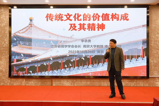 南京大学教授、江苏省儒学学会会长李承贵,以“中国传统文化的真精神”为题为在场嘉宾校友分享了一堂高度凝练和启发的国学课。他基于数十年的学术深耕,构建出“生活价值—方法价值—精神价值”的三维框架,并深刻诠释了“自强不息”“厚德载物”“和实生物”三大精神内核,引领大家重新发现经典之于当代的意义坐标。