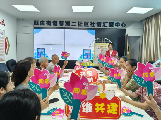 “三合三美”的核心,是让“自治”从楼道延伸到整个社区。除了静美楼、健康楼,春二社区还通过“邻聚力”六维工作法,打造了211号初心楼、152号文娱楼等多个特色楼道:“三角梅爷爷”在楼道开设“花坊课堂”,教居民养花护绿;“金邻帮帮团”化解电梯加装、房屋漏水等邻里矛盾,去年累计调解纠纷12起;社区还结合元宵、重阳等节日,开展“邻里喜乐会”“秋韵汇同心”等活动,让“陌生人社区”变成“熟人大家庭”。