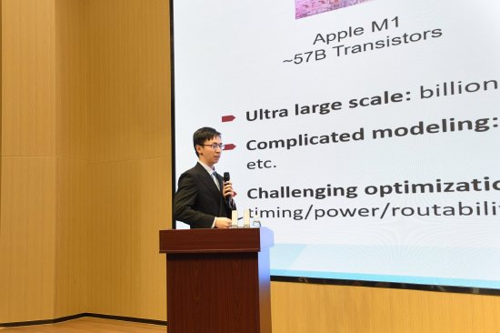 中电科首席科学家于宗光研究员做了题目为面向AI应用的算力芯片研究进展的报告,复旦大学邹卓教授做了题目为能效与算力驱动的类脑计算芯片的报告,北京大学张作栋博士做了题目为AI与异构计算在集成电路物理设计中的应用的报告。这3个精彩的报告分享AI在IC制造的应用发展、AI赋能集成电路产业机遇以及AI生态协作最新成果。
