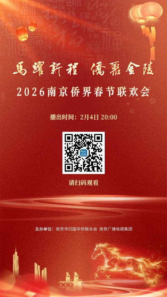 关注骏马启新程,侨心汇金陵。2月4日,“马跃新程·侨聚金陵”2026南京侨界春节联欢会在南京成功举办。联欢会通过牛咔视频客户端面向全球同步播放,广大归侨侨眷、海外侨胞通过线上线下齐聚一堂,共庆马年新春,抒发家国情怀。
