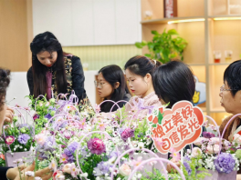 繁花入盏,悦己芳华。活动的高潮在“指尖生花·悦己容”篇章中开启。社区特邀花艺师现场授课,从插花技巧、色彩搭配到花语寓意进行细致讲解,并手把手指导大家修枝、剪裁、造型。平日里操持家务的双手,此刻格外灵巧。大家将各色花材精心搭配,一剪一插间,零散的花枝化作错落有致、独具匠心的花艺作品。看着自己亲手完成的作品,每个人的脸上都绽放出比花更灿烂的笑容。“原来,善待自己可以从一束花开始。”参与者们纷纷表示,这样的活动不仅学到了技艺,更收获了愉悦与放松。