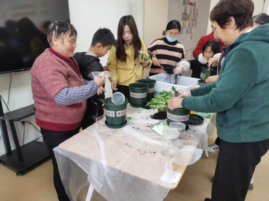 “以后自家阳台就能种小菜,厨余还能变肥料,太实用了!”带着孩子参与的亲子家庭家长感慨道。30余位居民现场领取花盆、菜苗与营养土,在志愿者指导下完成栽种,同步学习堆肥土使用、阳台养护等技巧,实现“厨余不出户、绿意进家门”,让绿色生活融入居家日常。