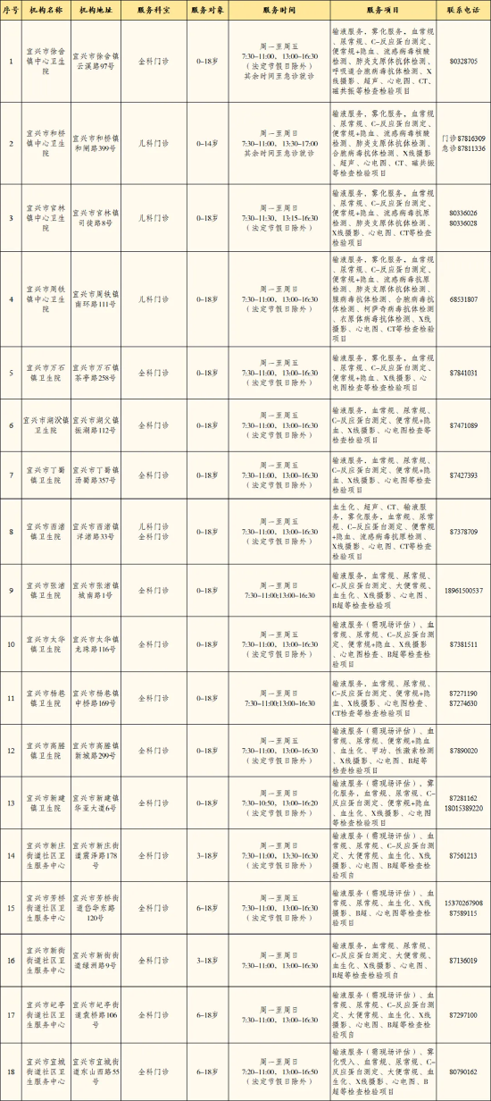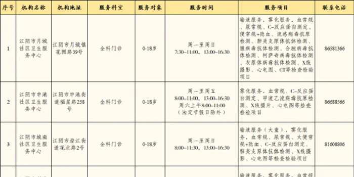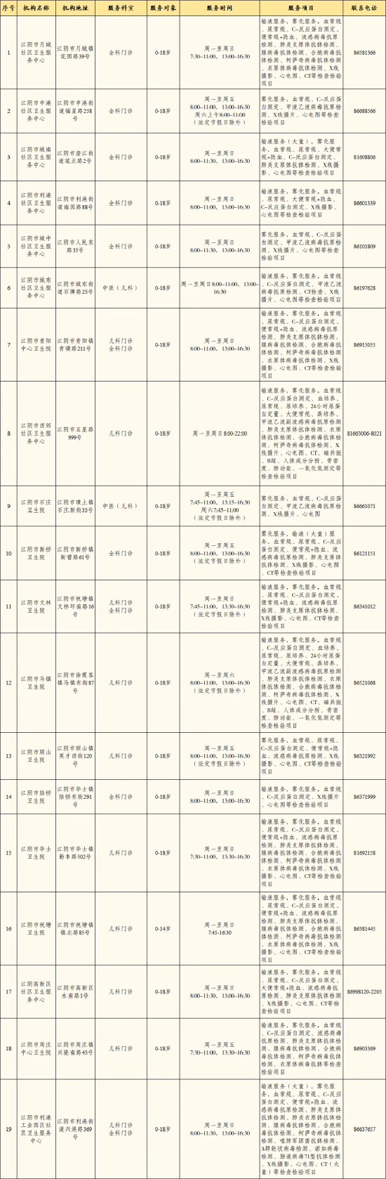 目前,全市可提供儿童诊疗服务的基层医疗卫生机构如下