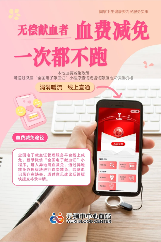 继2020年全面实现医疗机构血费直免全覆盖后,无锡市中心血站又率先推行血费跨省异地减免服务。